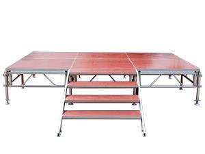 铝合金舞台采用优质铝合金材料焊接而成,外形美观。T型槽围绕框架设计,方便用户装饰舞台。也可以使用铝合金玻璃舞台。舞台采用先进的防滑材料,美观、安全可靠,脚高可调,规格可根据用户需要自由选择,采用出口防滑板,质量好,效果好,配有舞台楼梯,可随意放置。在舞台上随处可见,为了方便舞台演员,整体效果完美,质量有保证,规格尺寸也可定制。